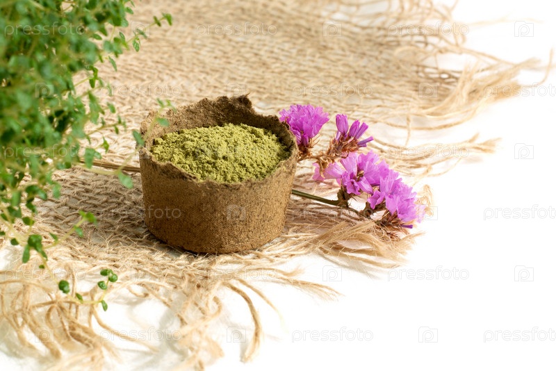 Порошок хны для окрашивания волос и бровей и рисования мехенди на руках, с зеленым пальмовым листом