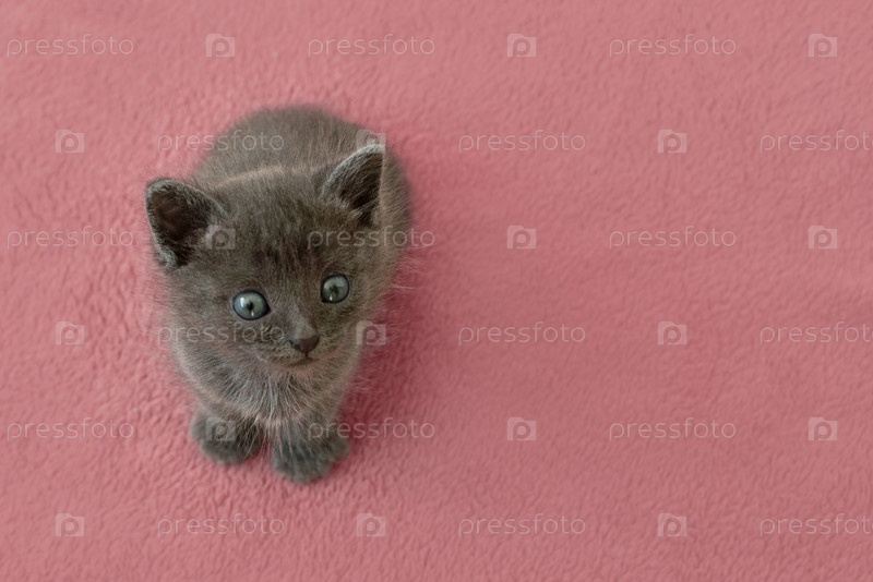 Серый котенок с когтями на розовой подушке
