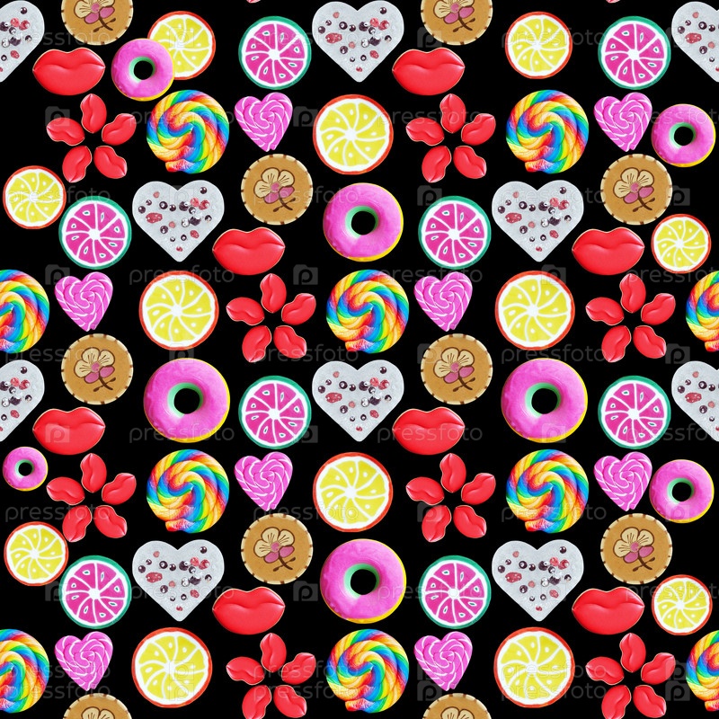 Много разных сладостей на черном фоне