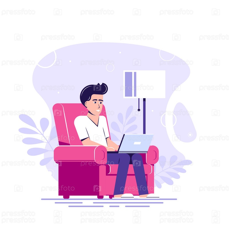 Дизайн концепции домашнего офиса, иллюстрация в плоском стиле