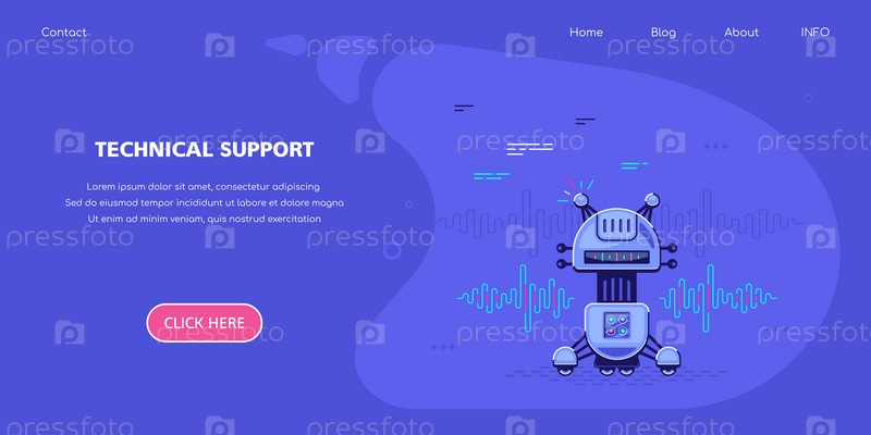 Дизайн концепции баннера технической поддержки, шаблон горизонтального бизнес-баннера с иллюстрацией робота. Плоский стиль складе векторные иллюстрации