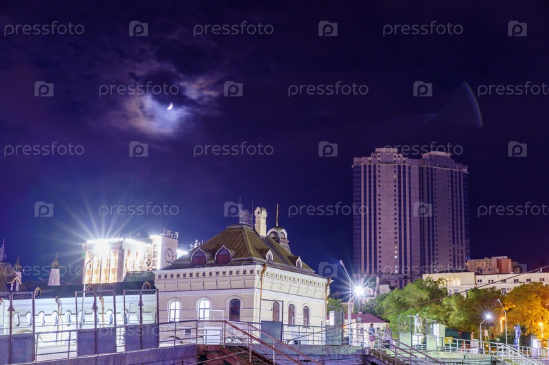 Ночной городской пейзаж с видом на вокзал