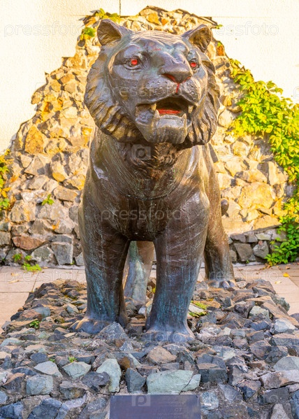 Владивосток, Россия-30 сентября 2018 г.: скульптура тигра на фоне стены. Символ города