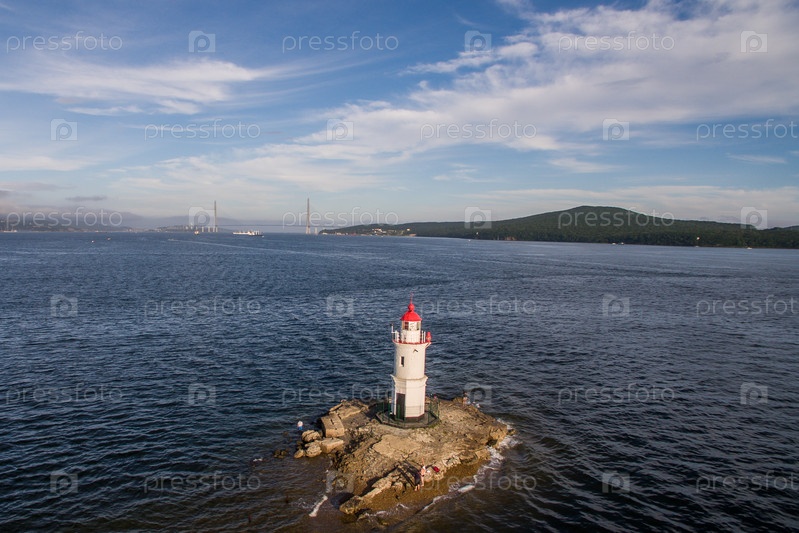 Вид с воздуха на морской пейзаж с красивым маяком