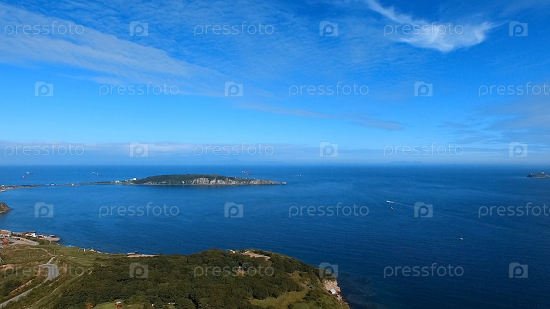 Морской пейзаж в проливе Босфор Восточный. Владивосток