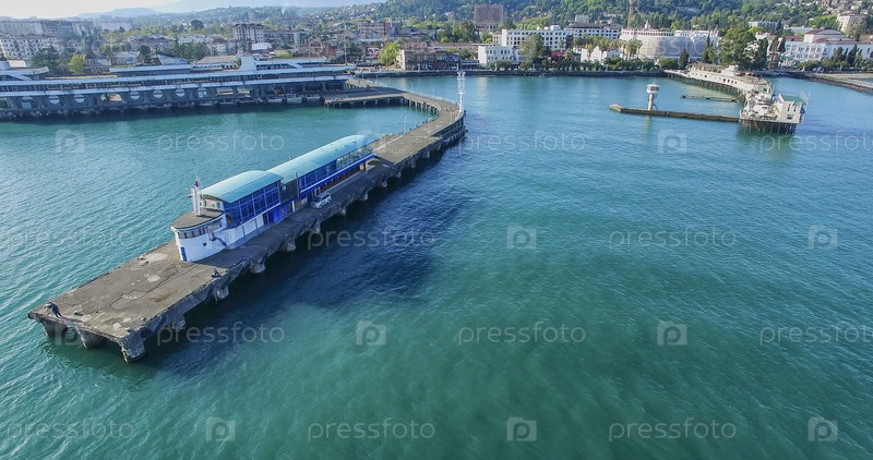 Вид с воздуха на городской пейзаж с видом на морской вокзал