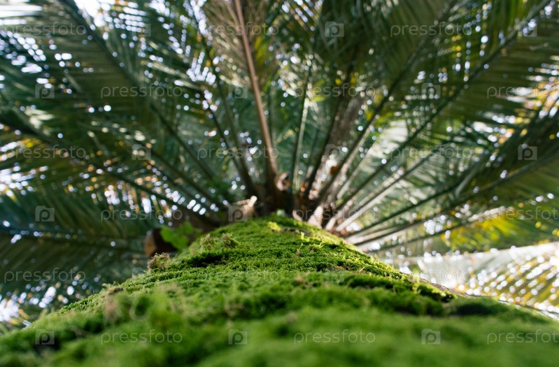 Естественный фон с пальмовым стволом и листьями