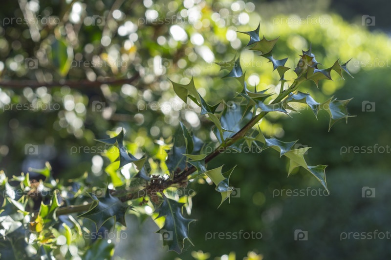 Холли ветка на размытом фоне с боке