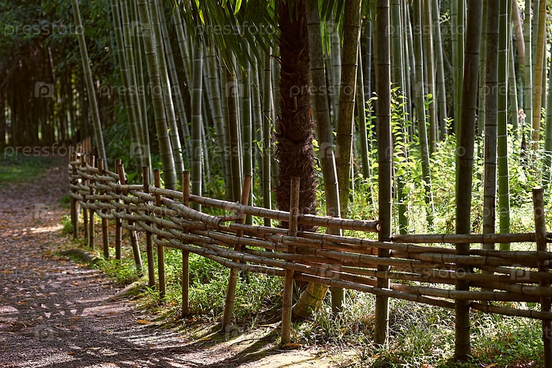 Природный ландшафт с видом на бамбуковый сад и бамбуковый забор
