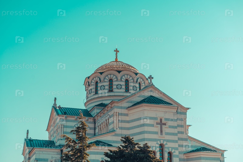 Севастополь Крым. Владимирский собор в Херсонесе. Весенний Херсонес и его главный храм. Достопримечательности Крыма
