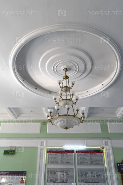 Интерьер старого железнодорожного вокзала с видом на люстру