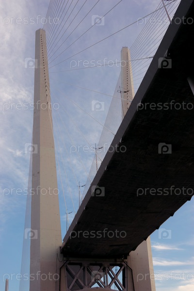 Строительство Золотого моста на фоне голубого неба