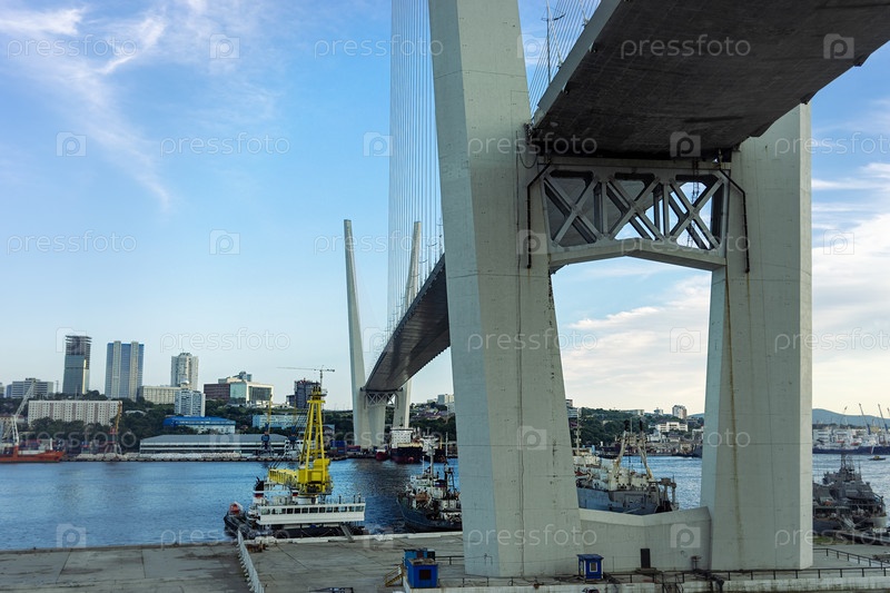 Городской пейзаж с видом на Золотой мост. Владивосток, Россия