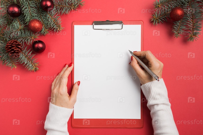 список пожеланий на рождество. вид сверху и пространство для текста. плоская лежа.