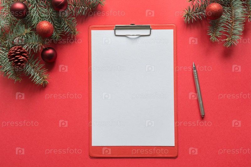 Рождественский контрольный список или приглашение на красный. Вид сверху и место для вашего текста. Плоская укладка