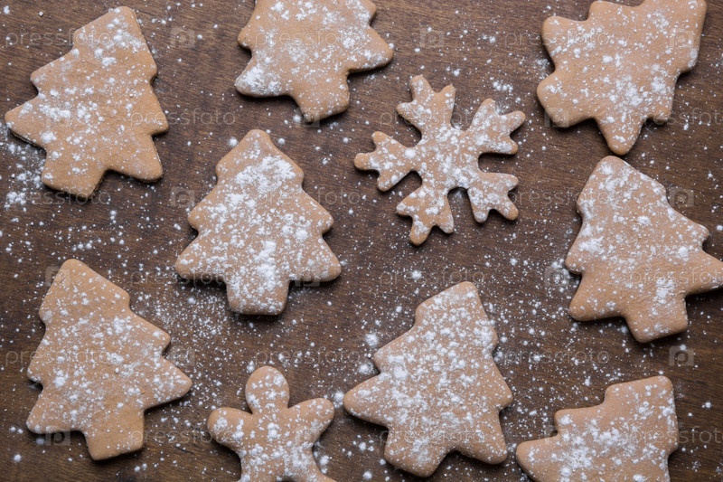 Рождественские пряники различной формы на деревянном фоне как узор. Изготовление домашней выпечки