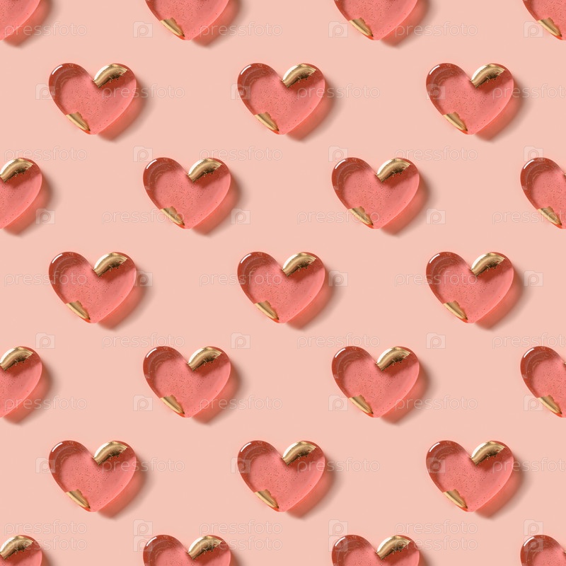 День Святого Валентина бесшовный узор из розовых сладостей в форме сердца на розовом