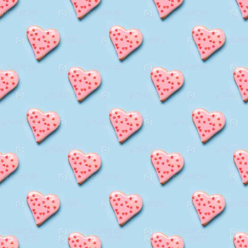 День святого Валентина бесшовный узор с домашним печеньем в форме сердца с розовой глазурью на синем фоне