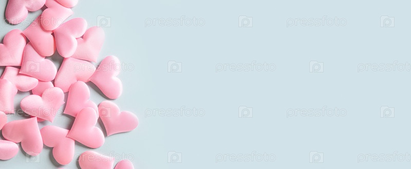Рамка из романтических розовых сердец на синем фоне. Открытка на день святого валентина с копией пространства. Концепция любви. Баннер