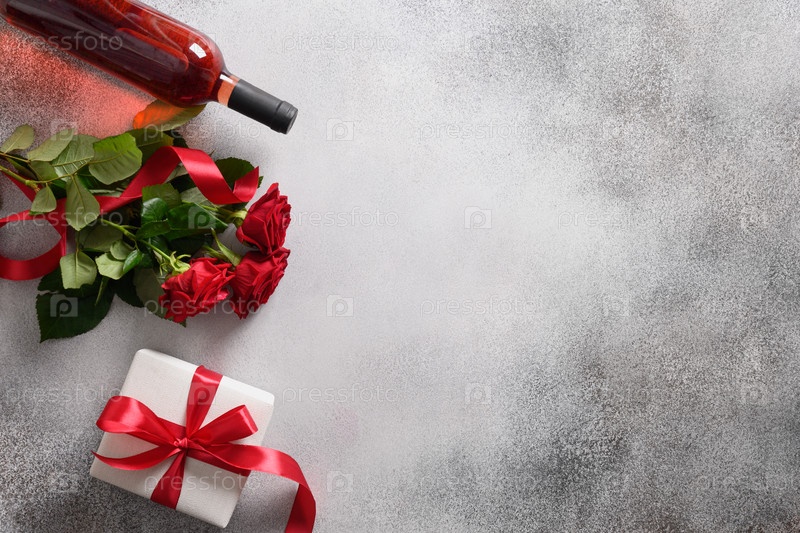 Открытка на день святого валентина с подарком, красными розами, шоколадными конфетами