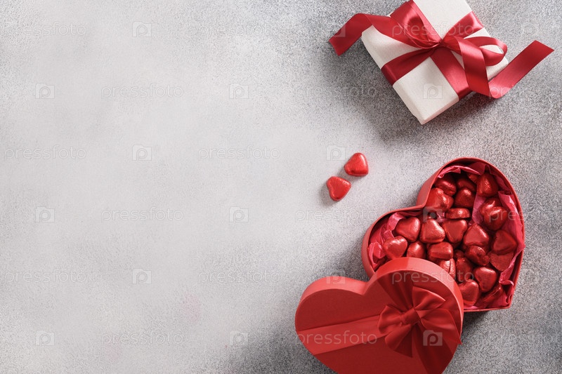 Открытка на день святого валентина с омантическим подарком и цветами красных роз