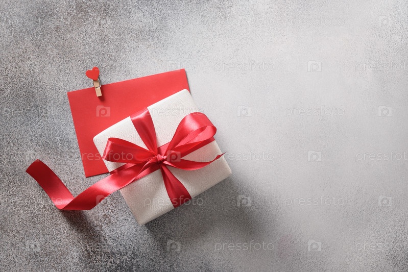 Валентинка с красным конвертом и романтическим подарком