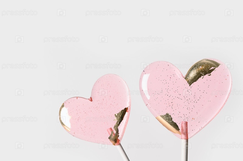 Розовые леденцы на палочке. Романтическая открытка ко дню святого Валентина