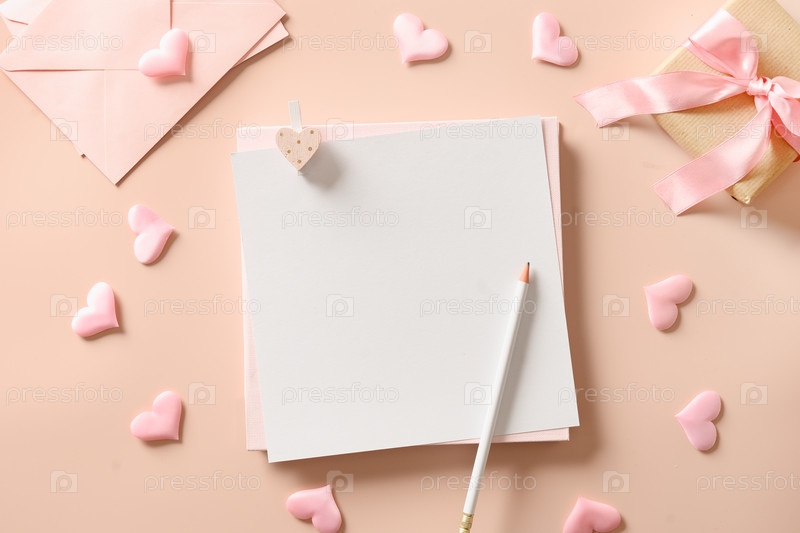 День святого валентина макет для письма с пустыми пустыми и розовыми сердечками, подарок. Открытка