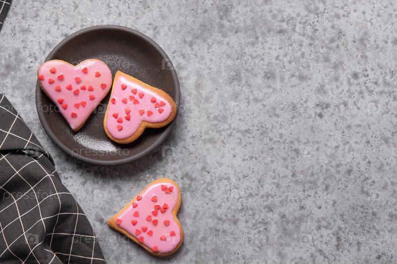 Домашнее печенье в форме сердца на белом столе