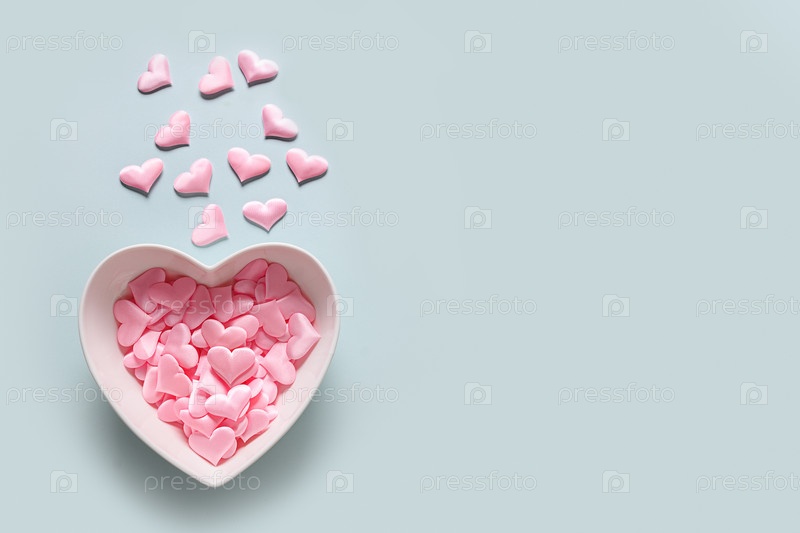 Открытка на День святого Валентина с розовыми сердечками на синем. Скопируйте пространство