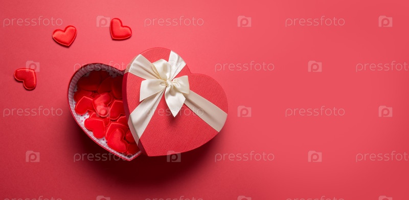 Романтическая красная коробка дня святого валентина в форме сердца на красном цвете