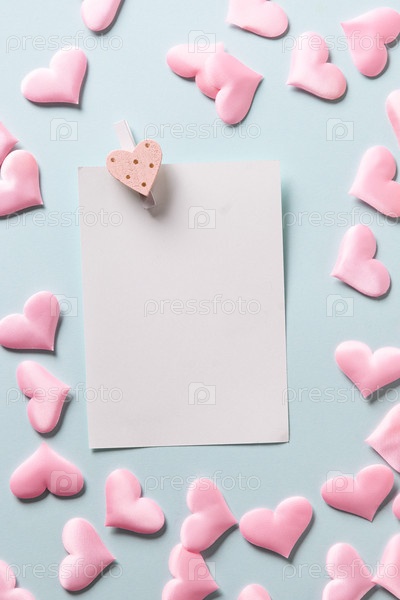 Романтический лист с розовыми сердечками на синем фоне. Открытка на день святого валентина с копией пространства