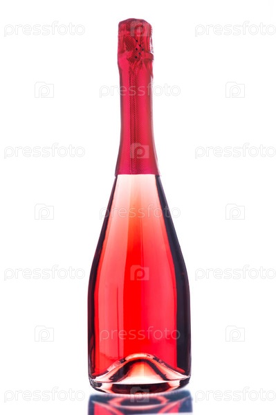 Бутылка розового игристого вина, изолированные на белом фоне. Вертикальный формат. Романтический подарок. Закрыть