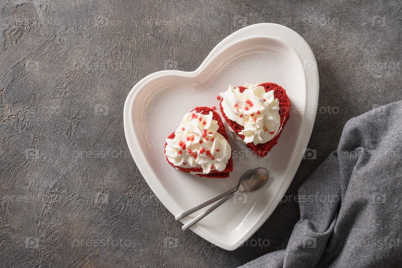 Красный бархатный торт в форме сердца на День святого Валентина. Вкусный домашний десерт