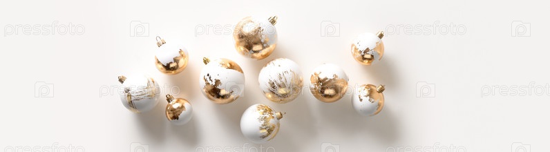 Рождественский баннер с белыми шарами позолочен, новая современная тенденция