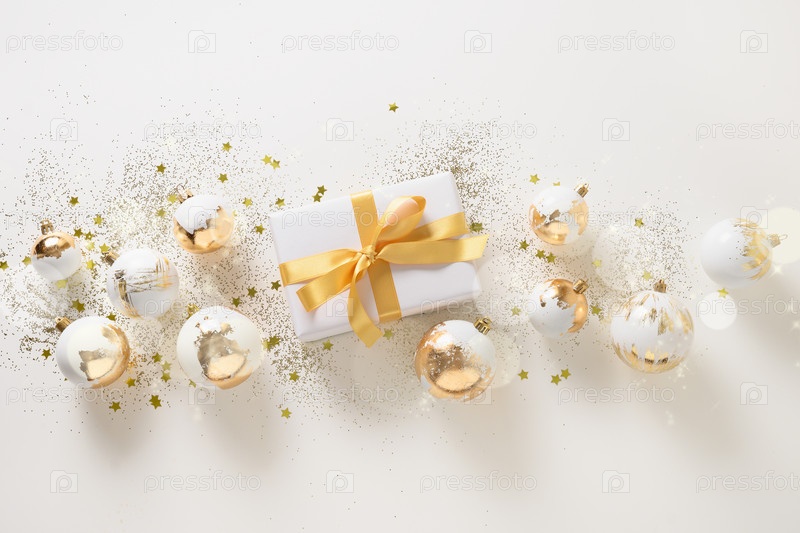 Рождественские белые шары покрыты золотом, новый современный тренд