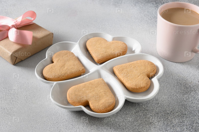 Кофе ко Дню святого Валентина, печенье в форме сердца для романтического завтрака
