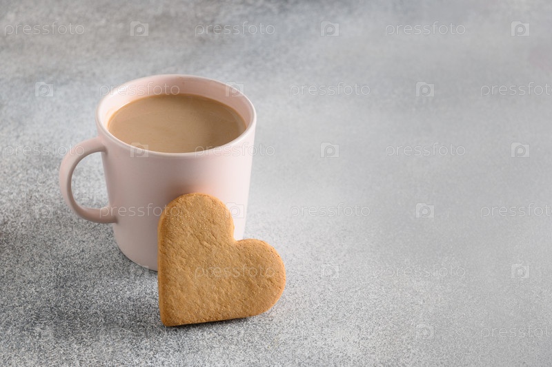 Кофе ко Дню святого Валентина и печенье в форме сердца на завтрак