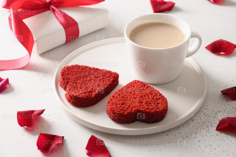 Красный бархатный торт в форме сердца на день святого Валентина. Вкусный десерт