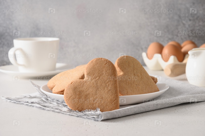 Кофе ко Дню святого Валентина, печенье в форме сердца для романтического завтрака