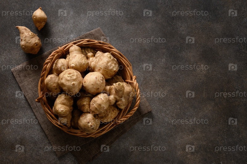 Корень топинамбура, солнечные ожоги на темно-коричневом фоне