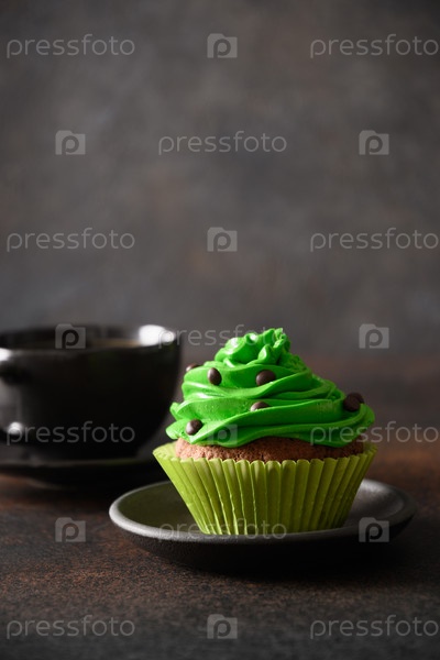 День Святого Патрика ирландский кофе и шоколадные кексы с зелеными сливками на коричневом фоне