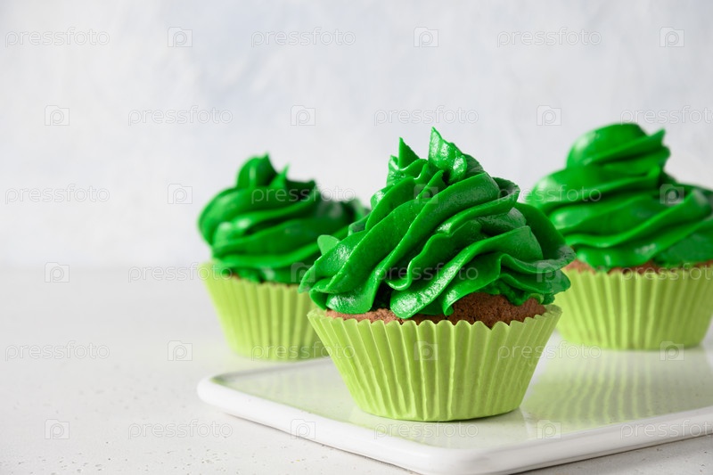 Домашний шоколадный кекс с зелеными взбитыми сливками