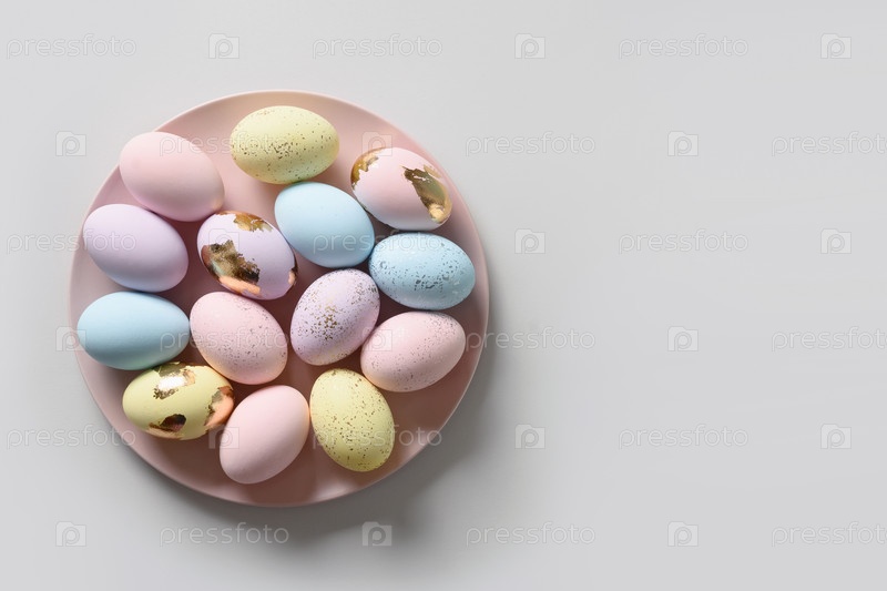 Пасхальные пастельные роскошные красочные яйца с золотым декором. Сделай сам. Поздравительная открытка для религиозного праздника и обычая традиции