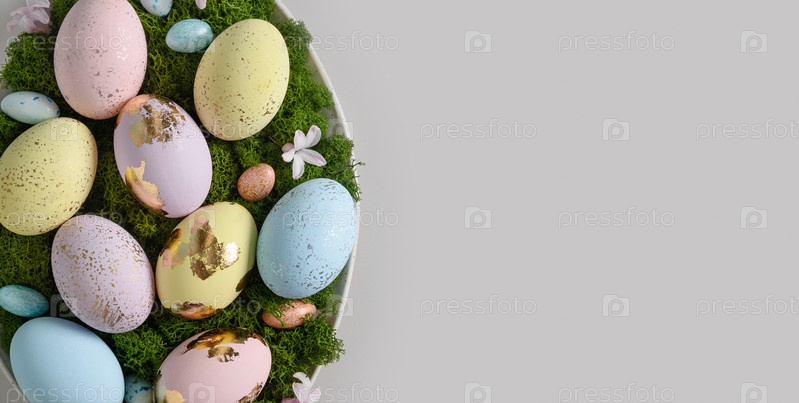 Пасхальная композиция своими руками в тарелке для праздничного стола с кроликом, яйцами, мхом и весенними цветами