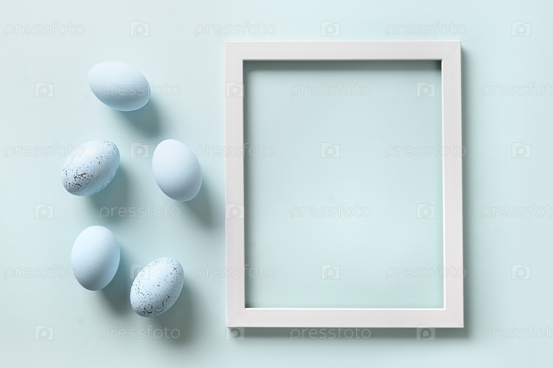 Пасхальные яйца в гнезде на синем фоне