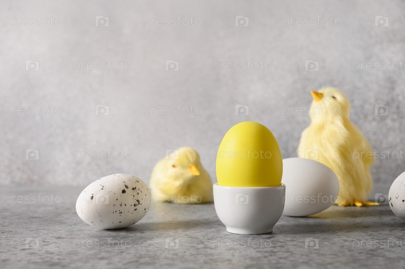 Пасхальная композиция с желтыми яйцами и цыплятами