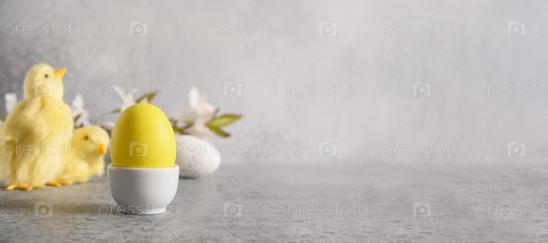 Пасхальная композиция с желтыми яйцами и цыплятами