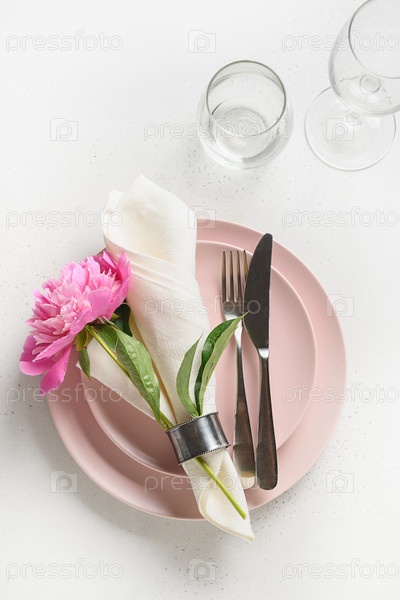 Романтическая сервировка стола с розовыми цветами пиона
