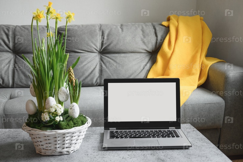 Домашний интерьер в гостиной с ноутбуком, Пасхальные онлайн-сервисы для просмотра из дома